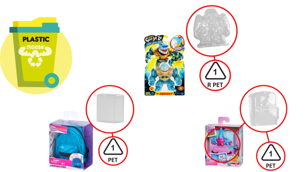 '"PET 1" indique que le matériau est du plastique polyéthylène téréphtalate. "R PET 1" est le même matériau fabriqué à partir de matières premières recyclées. Ce matériau est facilement recyclable, consultez votre municipalité ou conseil local pour des conseils sur la collecte et le recyclage. Les images ci-dessus montrent des exemples de ce matériau d'emballage.