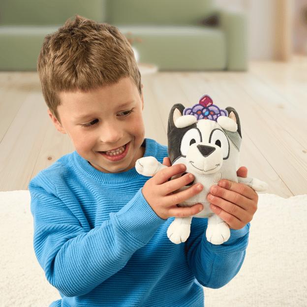 These bright and colorful plush Bluey Friends toys are made with deluxe fabrics and feature embroidered details. They are super-soft and double as a cuddly toy for showtime, storytime, or bedtime.