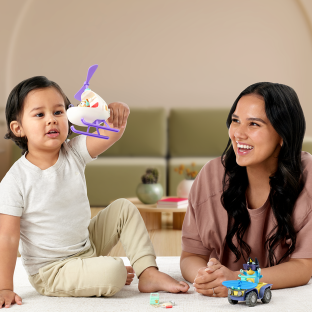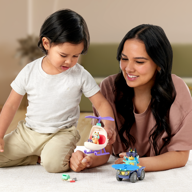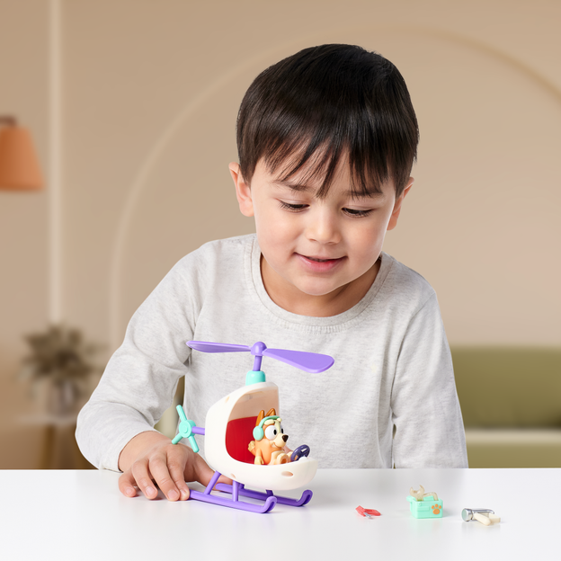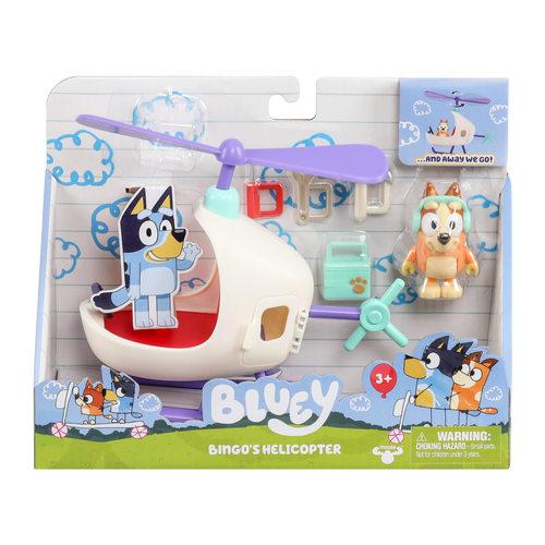 These Bluey Figure & Vehicle Packs come in different varieties. Choose from Bandit and his Beach Quad, and Bingo's Helicopter! Each pack comes with a posable figure and additional accessories. Collect them all and share the vehicles between them!