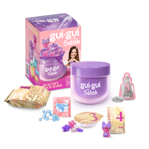 Step into the world of Gui Gui By Salish – a one-of-a-kind slime experience designed for ultimate fun vibes. Co-created with HUGE YouTube influencer Salish Matter, this slime collection brings Salish’s signature style to life with vibrant colors, dreamy textures, and amazing scents. Every slime is packed with exciting surprises, making it more than just a toy—it’s a full-on beauty and ASMR experience. Get ready to mix, style, and shine with Salish to create the most glam slime ever.