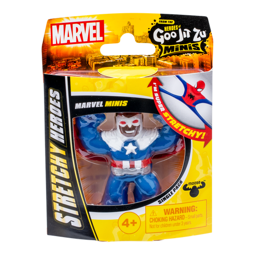 These mini, stretchy versions of your favorite Marvel Super Heroes are a great way to play with Goo Jit Zu! Small in size at just 2.5 inches / 6.3 CM tall but big in stretch and squish, all these Marvel Mini Superheroes are ready to battle. Each Mini Marvel Super Hero can stretch their amazing bodies up to 4 times their actual size. Stretch and wrap them around each other to watch them battle as they go back to their original shape and size. There are 8 Super Stretchy Mini Figures to collect. Many of your favorite Marvel Super Heroes are available in this Mini Goo Jit Zu range including Spider-Man, Hulk, Captain America-Sam Wilson, Iron Man, The Invisible Woman, The Thing, Mr. Fantastic and Human Torch! Discover a new way to play and save the day with these cool collectible Mini Marvel themed Heroes of Goo Jit Zu!