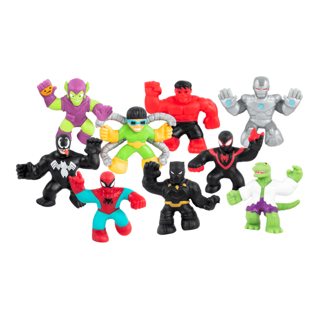 There are eight Super Stretchy Mini Figures to collect. So many favorite Marvel Heroes are available in this Mini Goo Jit Zu range including Spider-Man, Red Hulk, The Lizard, Green Goblin, Venom, Miles Morales, Doc Ock, War Machine and Black Panther!