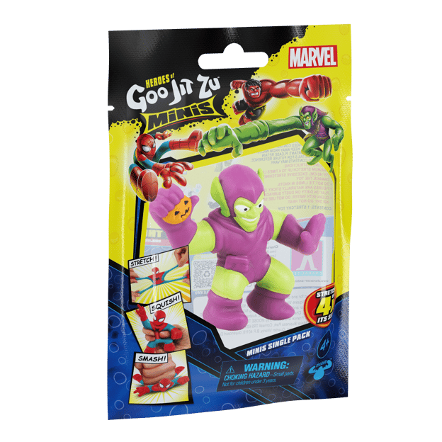 Heroes of Goo Jit Zu the Marvel edition Minis, 2.5"/6.3cm tall, can stretch up to 4 times their actual size. Stretch and wrap them around each other to watch them battle. Eight new Marvel Mini Heroes of Goo Jit Zu to collect.