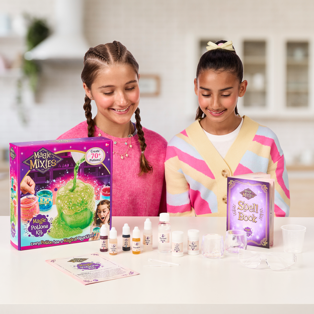 The Magic Mixies Magic Potion Kit has everything your child needs to create their Magic Potions! Included are 8 different ingredients, 2 mixing cauldrons, Spell Book with all the instructions, measuring cup, pipette, safety glasses, spoon and stickers to help kids make their potions. There are over 70 potions to create; giving children hours of magical fun as they mix, stir and astound!