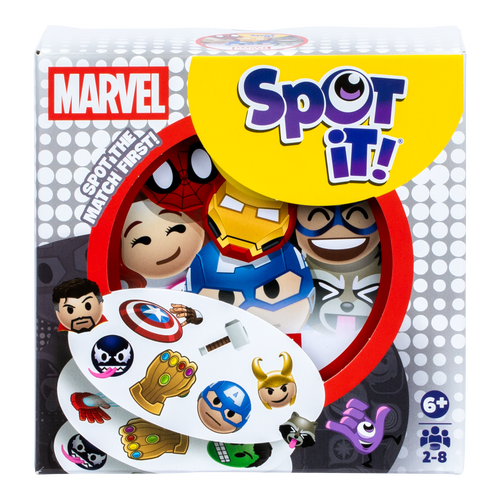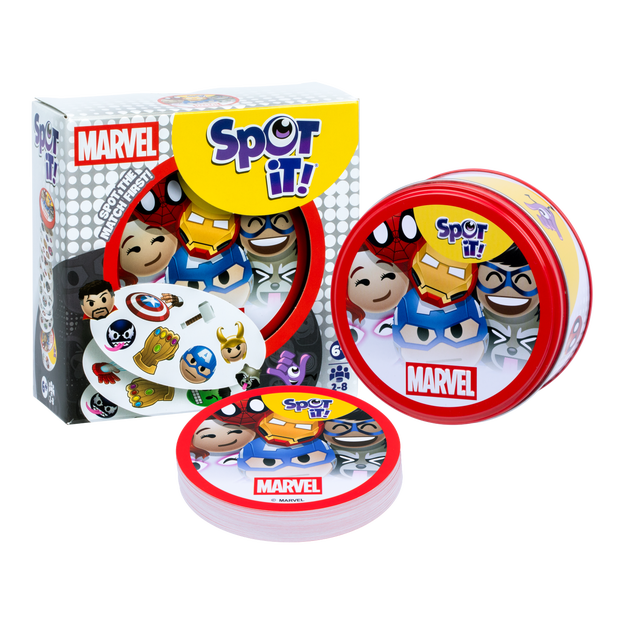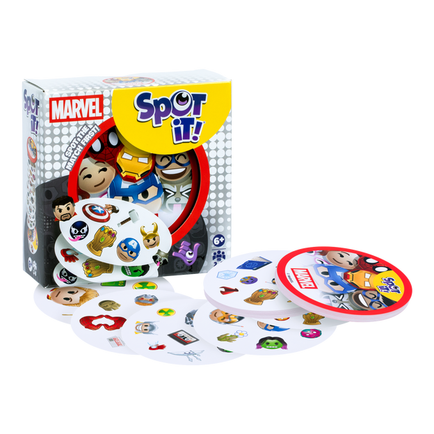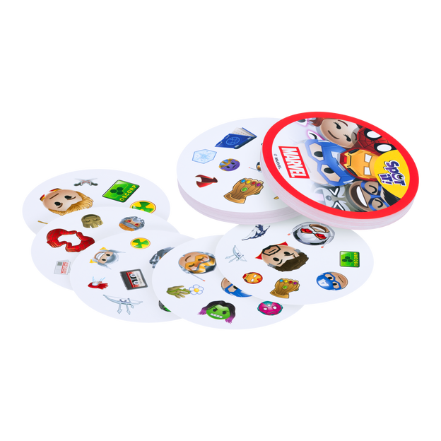Spot It! has expanded its line-up with an exciting Marvel edition. This game offers a unique twist on the classic matching mechanics, with some of your favorite Marvel Characters like Iron Man, Captain America, Cosmic Cube and more.