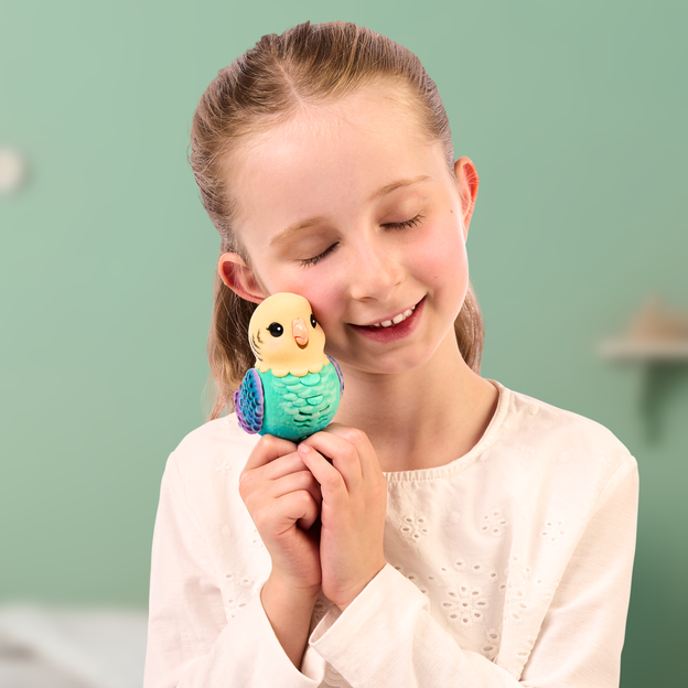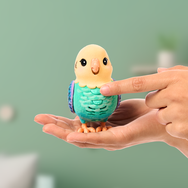 My Really Real Bird sieht nicht nur aus wie ein richtiger Vogel – er klingt auch so! Mit seinen kunstvollen Federn, seinem beweglichen Schnabel und seinen Vogelgeräuschen wirkt er wirklich täuschend echt. Indie der Wellensittich ist so interaktiv – der Schnabel bewegt sich wirklich. Indie liebt es außerdem, liebliche Melodien zu pfeifen und deine Stimme nachzuplappern! Zeichne deine Stimme auf und Indie spricht dir nach. Du kannst Indie auch vorsingen. Er pfeift dir dann ein Liedchen mit deiner Melodie. Mit über 20 Geräuschen und Reaktionen. Streichle Indie über den Rücken, um ihm süße Vogelgeräusche zu entlocken. Setze Indie in seinen Vogelkäfig und nimm ihn überall hin mit!