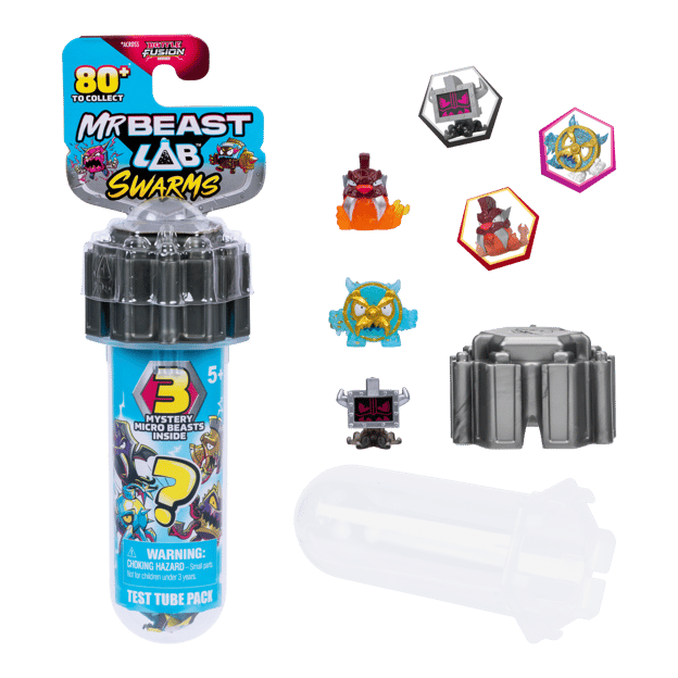 Die waghalsigen Experimente von MrBeast haben neue Mini-Monster entfesselt, die aus Urgewalten wie Frost und Lava entstanden sind und mit ihrer Ausrüstung für den Kampf gegen die Shroud bereit sind. Welchen Swarm wirst du wohl zuerst enthüllen, um das Labor vor den Shroud zu retten? Eine starke Aufstellung wartet auf dich: Es gibt über 80 einzigartige, 2,5 cm große Swarms zu Sammeln. Entdecke die seltenen, ultraseltenen und besonderen Editionen sowie den Ultra Armor Panther Swarm der Limited Edition (nur 1000 Stück erhältlich). Jede Reagenzglas-Packung enthält 3 mysteriöse Mini-Monster, 3 Sticker und eine Fusions-Kapsel zum Zusammenstecken und Präsentieren. Sammeln, spielen, präsentieren und kämpfen!