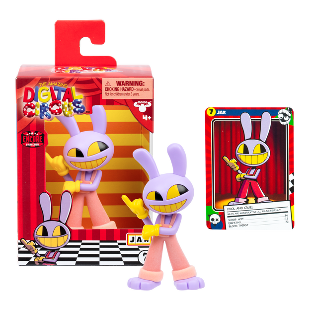There are 7 vinyl figures to collect in the Encore Collection. Jax is No.7. Collect Caine, Pomni, Pomni Fast Food, Kinger, Ragatha, Jax and Gangle.