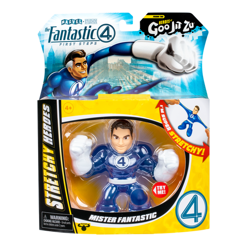 Each Marvel Super Hero has a unique goo filling that has a different texture and feel. Collect all 4.5" / 11.4 CM Marvel Heroes from the Fantastic 4 First Steps movie including Human Torch, Mister Fantastic and The Thing. Play with your favorite Fantastic 4 Marvel Super Heroes in an awesome GOOEY way and with NO mess! Their amazing stretchy bodies can stretch out and then return to their original shape!