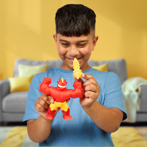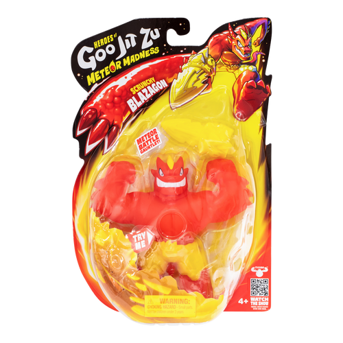 Brace yourself for a meteoric blitz with the all-new Heroes of Goo Jit Zu Meteor Madness Blazagon. In addition to Blazagon, there are 4 other epic Meteor Madness figures to collect, each featuring a unique goo-filled core that kids will love to squish, twist and stretch! Get ready for next-level battles, extreme action, and high-stretch excitement with the new Meteor Madness Blazagon!
