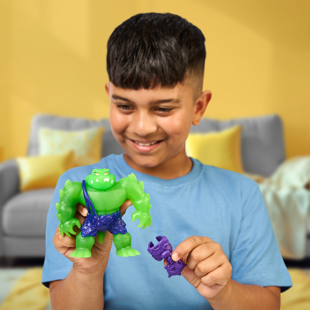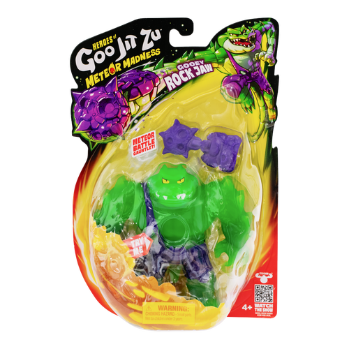 Brace yourself for a meteoric blitz with the all-new Heroes of Goo Jit Zu Meteor Madness Rock Jaw. In addition to Rock Jaw, there are 4 other epic Meteor Madness figures to collect, each featuring a unique goo-filled core that kids will love to squish, twist and stretch! Get ready for next-level battles, extreme action, and high-stretch excitement with the new Meteor Madness Rock Jaw!