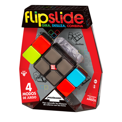 Llévalo a donde quieras. Juega cuando quieras. ¡La diversión está asegurada! ¡Llévalo encima! ¡Flipslide te cabe en la mochila y hasta en el bolsillo de la chaqueta! ¡Gira los bloques laterales para dar con los colores correctosy desliza los bloques para hacerlos coincidir!