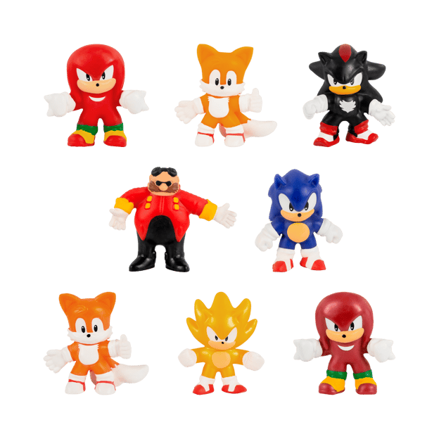 Il y a huit nouveaux Heroes of Goo Jit Zu Sonic the Hedgehog miniatures à collectionner : Sonic, Knuckles, Tails, Sonic doré, Shadow, Tails argenté, Knuckles métallique et Dr Eggman !