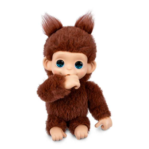 Avec sa fourrure brun foncé toute douce, ce bébé singe répand joie, surprises et câlins partout où il va. Très interactif, Chikki Cherry réagit au toucher avec plus de 20 sons et réactions réalistes trop mignons. Nourris-le, chatouille-le ou laisse-le sucer son pouce pour l'entendre pousser des cris de singe trop mignons. Chikki Cherry peut s'accrocher ou se suspendre n'importe où grâce à ses mains et pieds qui s'agrippent partout. Tu ne trouveras pas meilleur compagnon pour t'amuser partout où tu vas !