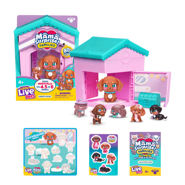 Start your family with the Mama's House, then grow your family with the Adoption Pack and discover new puppies and kittens! There are 8 pet families to collect across Season 2, including Ragdolls, Domestic Cats, Dachshunds, Pugs, Shepherds, Yorkies, Retrievers, and the Limited Edition Persian Cat family. Attach the door to the house and care for Mama by wiping her cheeks with a damp cloth. Her cheeks will turn rosy, showing she is ready to reveal her babies! Carefully place her in the house, close the door and then open it to reveal a baby! Open and close the door again and again to discover 4, 5, or 6 babies! Each family has their own special colors, personalities, and a unique accessory. Will you discover the new squishy and flocked rare babies? There are so many fun personalities and poses to discover.