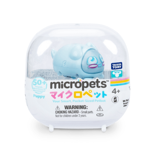 Cute, interactive, and full of personality, Micropets bring endless fun wherever you go. This Micropet Puppy scurries, dances, talks and light up with expressive LED faces. Care for your Micropet Puppy by feeding, charging, and responding to its needs to unlock 5 levels of play with new sounds, movements, and celebrations. With over 50 reactions, Micropets keep kids engaged and entertained. Connect two or more Micropets to watch them sing and dance together. Collect Bunny, Kitten, and Puppy – and see if you can find the ultra rare Golden Kitten. Designed for ages 4+, Micropets are the ultimate interactive toy and gift for kids.