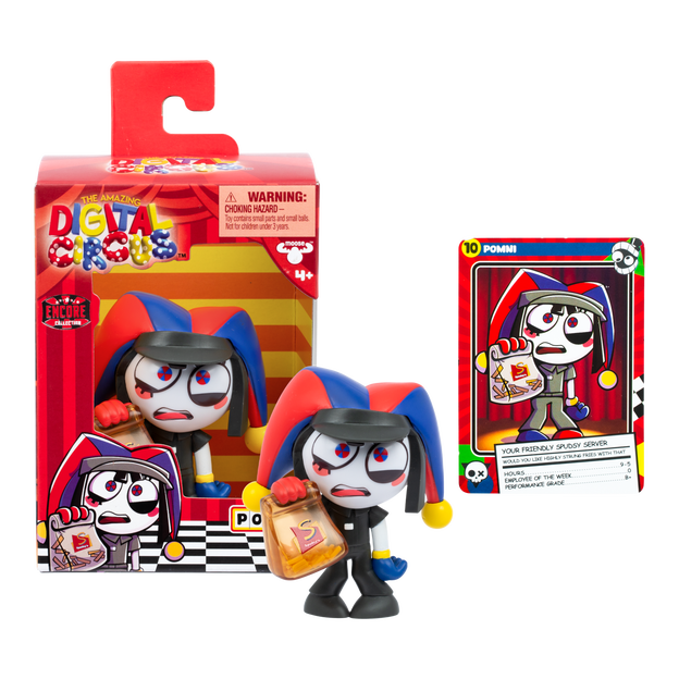 There are 7 vinyl figures to collect in the Encore Collection. Pomni Fast Food is No.10. Collect Caine, Pomni, Pomni Fast Food, Kinger, Ragatha, Jax and Gangle.