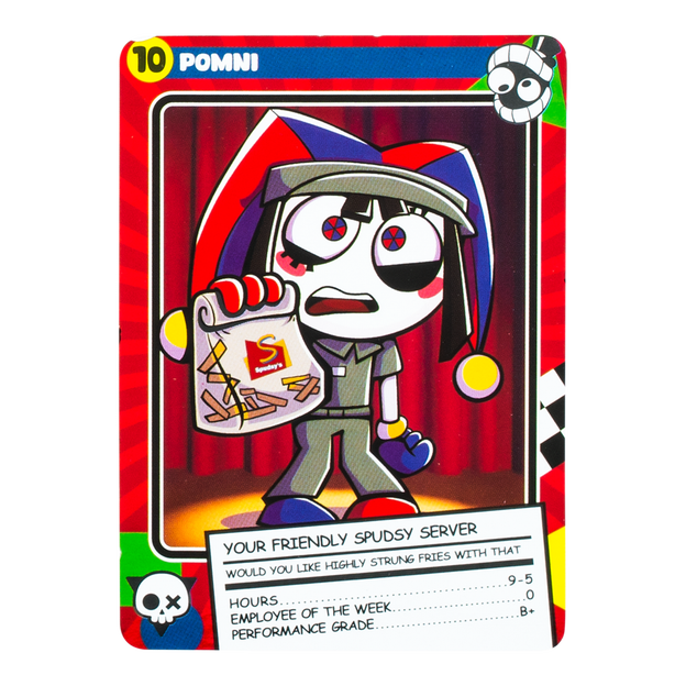 High quality 4"/10.1 CM figure packaged in a collector window box with a collector card. No. 10 in the Encore Collection, Pomni is made with premium materials with vivid detail and has a "See-Thru Bag of Fries". Styled in her signature pose that captures her unique personality. Collect them all.