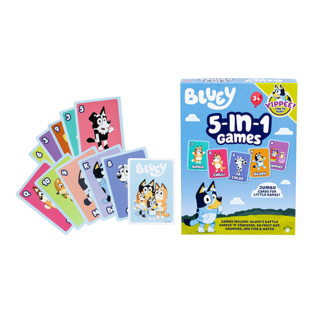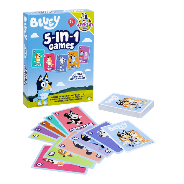 This card game set includes 5 "Family Favorite" card games all with a Bluey twist!