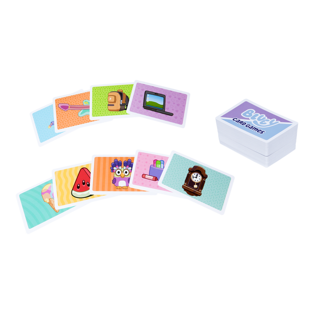This fun and creative kids' game features two ways to play: Bluey Charades and Bluey Story Maker. Twice the family fun in one box! With 60 colorful picture cards inspired by Bluey’s world, there’s endless room for storytelling, imaginative play, and creative adventures. Perfect for ages 4 and up, this preschool game and family game is quick to learn, easy to play, and full of giggles. No setup or reading required – just pure Bluey fun! Great for family game nights, playdates, or anytime kids want to jump into Bluey’s world of play.