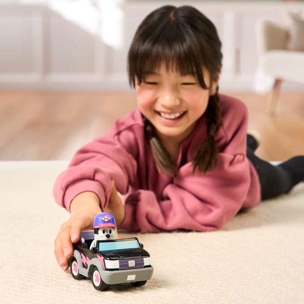 Ride along in the Pizza Girls Car with Muffin. This vehicle comes with a 2.5" (6cm) Muffin figure wearing a mechanic's hat. With articulated arms and legs, she's perfect for play and posing. Children will love using these fun-filled cars to recreate some of the most memorable moments from the show and make up new adventures.