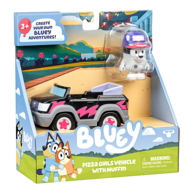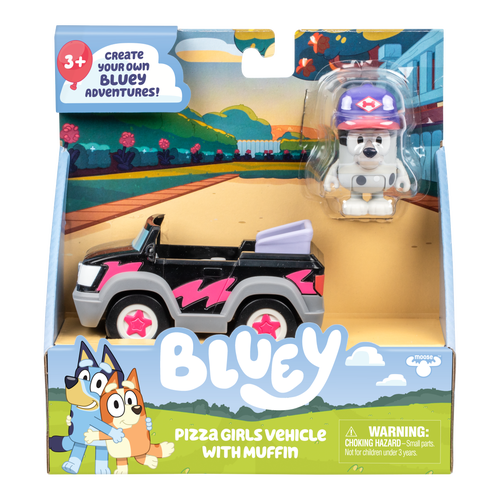 Pick from three fun and unique vehicles straight from the TV series! Whether it's delivering pizzas with Muffin, driving like a granny with Janet, or hitting the road in Bluey's classic 4WD, each vehicle brings a different adventure. Fans can collect them all to mix, match, and create even more exciting Bluey moments!