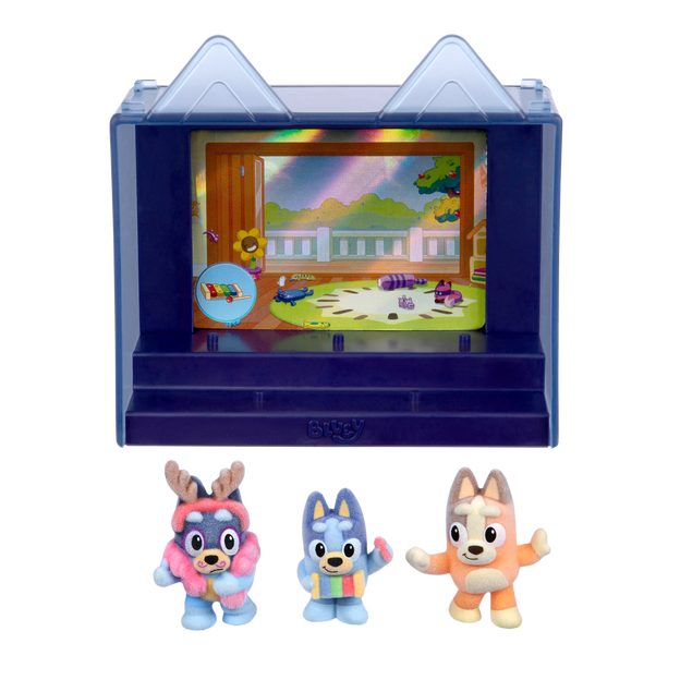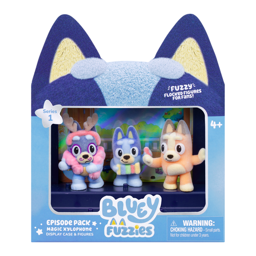 These mini collectible figures look as good as they feel, thanks to their soft, flocked finish that gives each figure their signature fuzzy feel. Every figure is inspired by a fan-favorite episode, so you can recreate iconic moments from the show. The “Magic Xylophone” Episode Pack comes with 3 figures - Bluey, Bingo, and Bandit. Pop them into the display case, which holds 5 figures, and make sure to look out for the other two figures from the episode to complete your set. Kick off your collection today and dive into the world of Bluey Fuzzies!