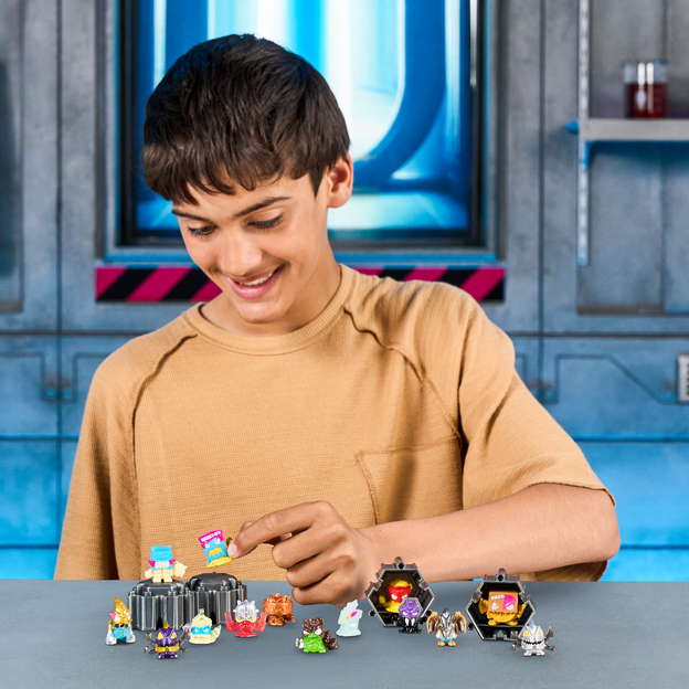 MrBeast’s lab experiments have unleashed epic Micro Beasts! Kick off your collection with the Mega Lab Pack, featuring 14 mystery Micro Beasts from the 80+ Battle Fusion Series. Test, trial, and train them to discover the most powerful Swarm. Then use the 4 Fusion Caps to connect, stack, and display your lineup in battle-ready formation - prepped to take on the Shroud!!