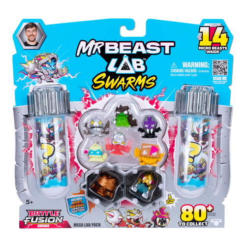 MrBeast’s cutting-edge experiments have unleashed over 80 unique Micro Beasts - each with their own unique sticker! The Mega Lab Pack includes 14 Micro Beasts and 14 stickers - will you collect all 80+ Battle Fusion Swarms and complete your Sticker Book collection?