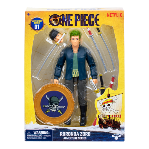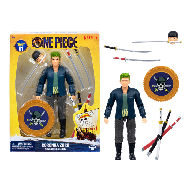 This collectible figure embodies the spirit of the Straw Hat crew’s fearless swordsman. With 22 points of articulation, letting you strike iconic poses straight from the show. Packed with 5 exciting accessories, the figure includes swappable swords, a sword holder, a swappable face, and a berry coin display base. Standing at 6" (15.24cm) tall, Zoro is ready to take to your display shelf or the next adventure on the high seas. Collect the full crew: Luffy, Chopper, and Wapol, and recreate unforgettable moments from the Netflix adaptation that brought Eiichiro Oda’s legendary manga to live action.